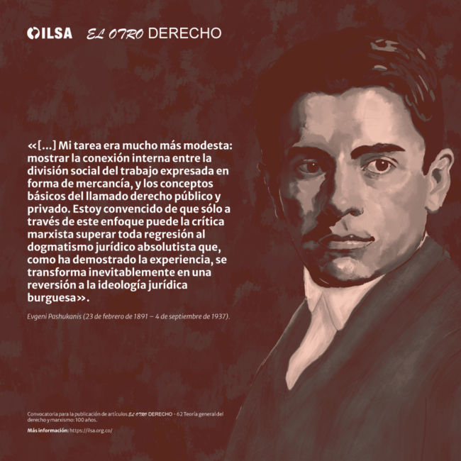 Recordamos el nacimiento de Evgeni B. Pashukanis el 23 de Febrero de 1891 en Stáritsa (Rusia). Nuestra revista El Otro Derecho • 62, estará dedicada al centenario de su libro “Teoría general del derecho y marxismo”.